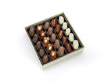 Dates with dark Belgian chocolate stuffed with roasted almonds.